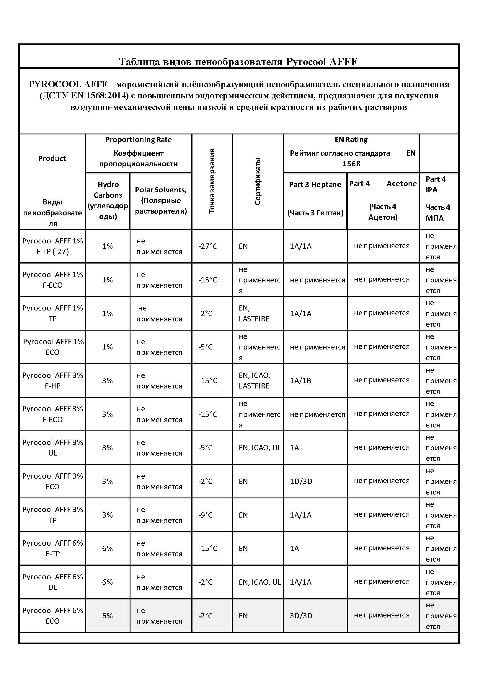 PYROCOOL AFFF – морозостойкий плёнкообразующий пенообразователь специального назначения (ДСТУ EN 1568:2014) с повышенным эндотермическим действием, предназначен для получения воздушно-механической пены низкой и средней кратности из рабочих растворов при применении штатного пожарного оборудования, а также растворов смачивателей.